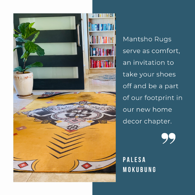 The Mantsho Maze design is the first release for Palesa's EDIT Collabortion with Airloom. It's regal yet playful, a nod to the traditional with a modern twist... a selection of unique rugs that announce Mantsho's entry into the world of home decor. Here's to many more...